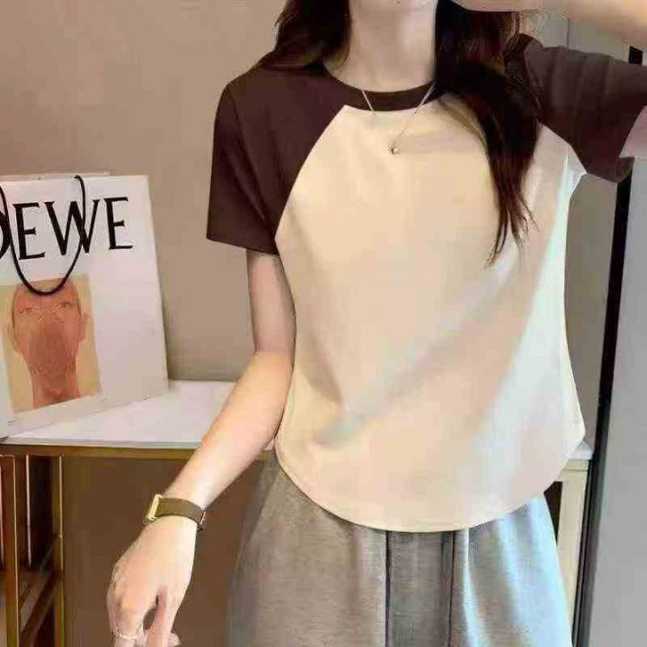 ☕️纯棉夏季新款独特别致甜辣妹多巴胺穿搭上衣设计感修身插肩短袖t恤女100...