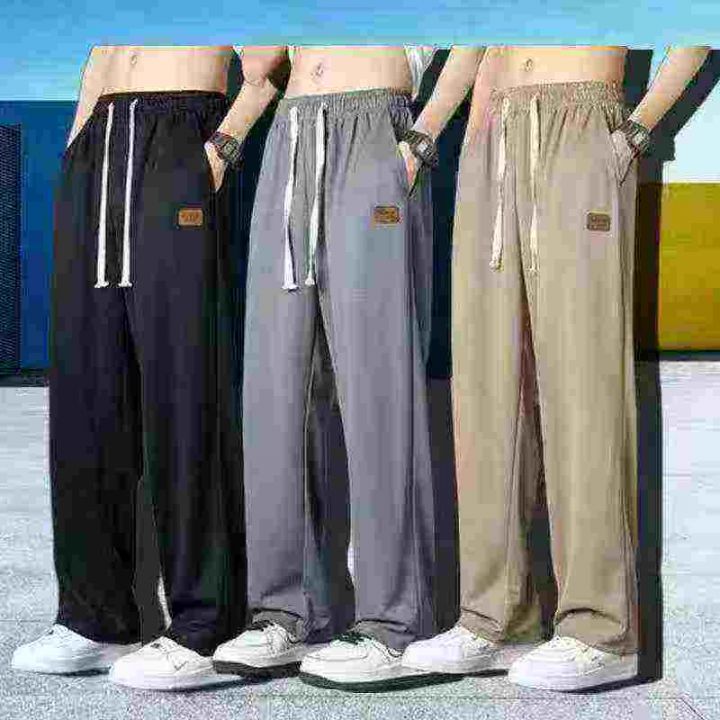 外穿夏季冰丝薄款速干透气休闲裤男生运动垂感直筒阔腿长裤,全部独立拉链原包装,尺码M到4XL,黑色占比超多,货品干净,版型漂亮
