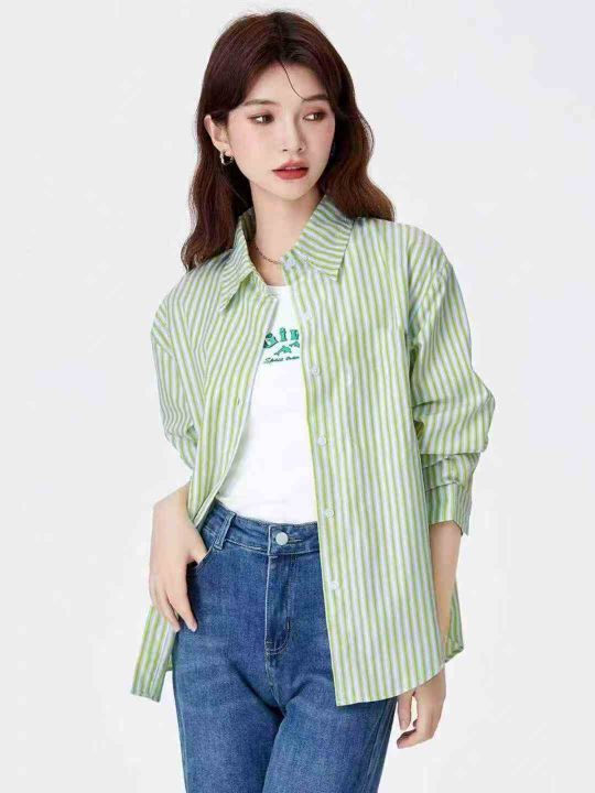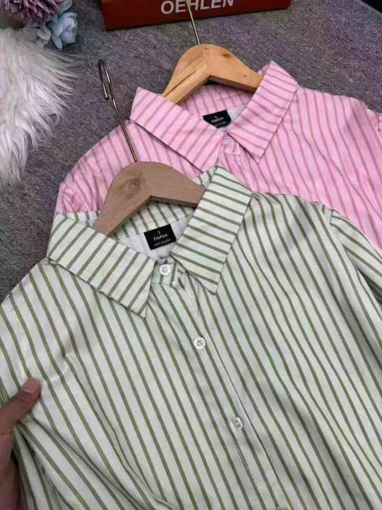 女竖条纹减龄韩系宽松气质显瘦衬衫,独立包装,码数1-5,数量140件,大货粉多,货号119#27
