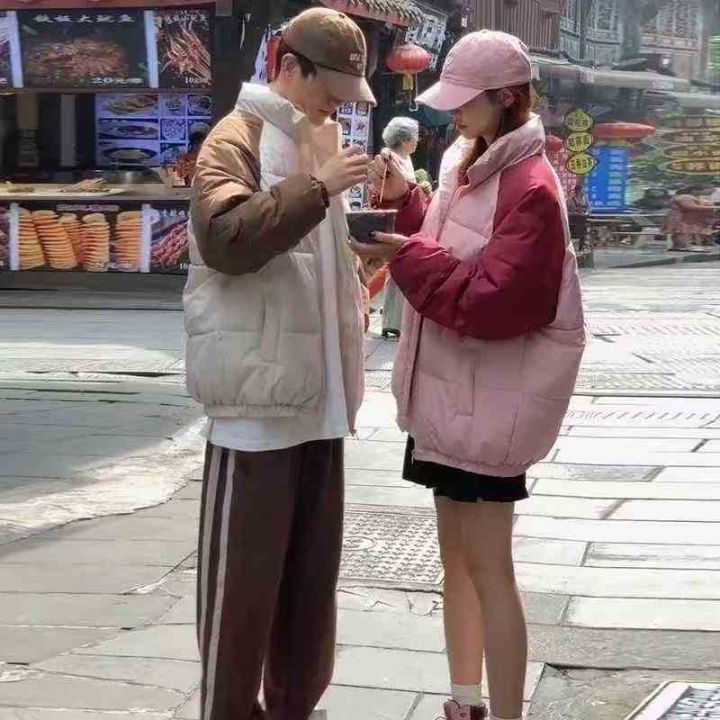 加厚保暖棉服撞色拼接棉服外套男女秋冬夹棉加厚面包服...