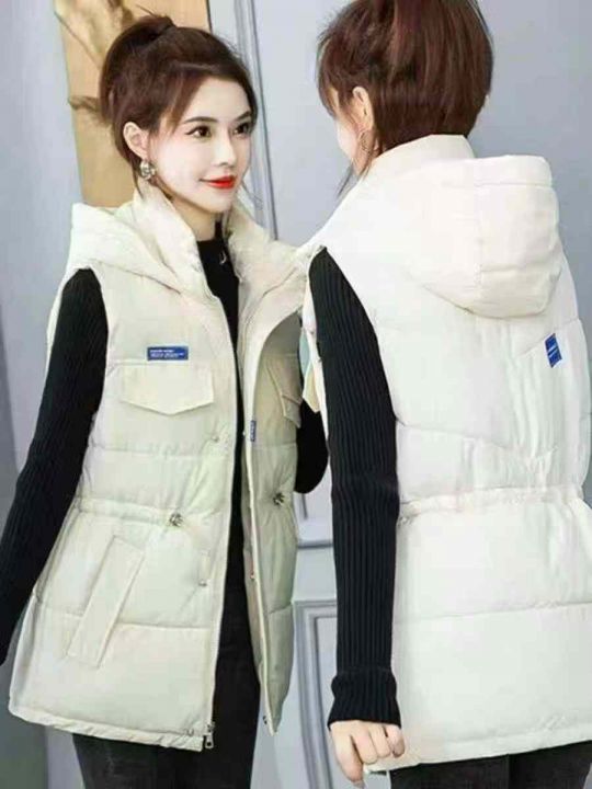 秋冬新款连帽保暖羽绒棉马甲外套女韩版收腰显瘦,(帽...