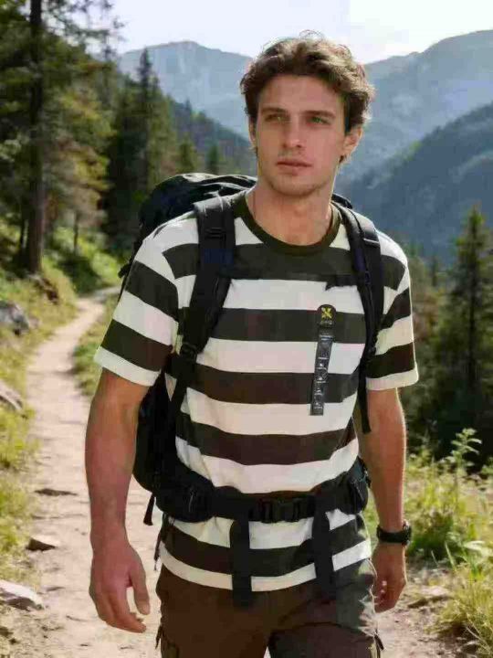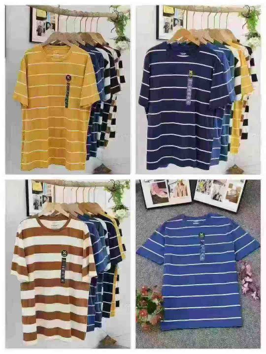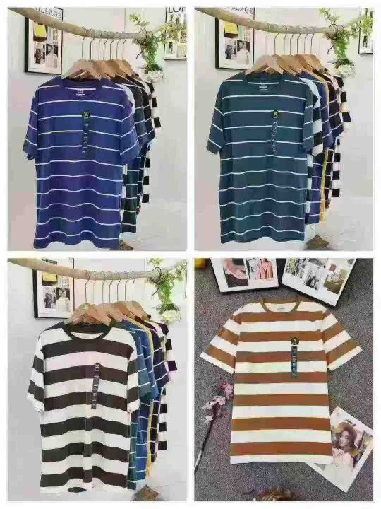圆领条纹纯棉短袖T恤,清9.8码数M一3XL,数量610件左...