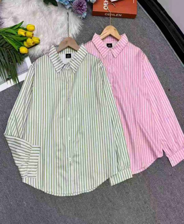 女竖条纹减龄韩系宽松气质显瘦衬衫,独立包装,码数1-5,数量140件,大货粉多,货号119#27