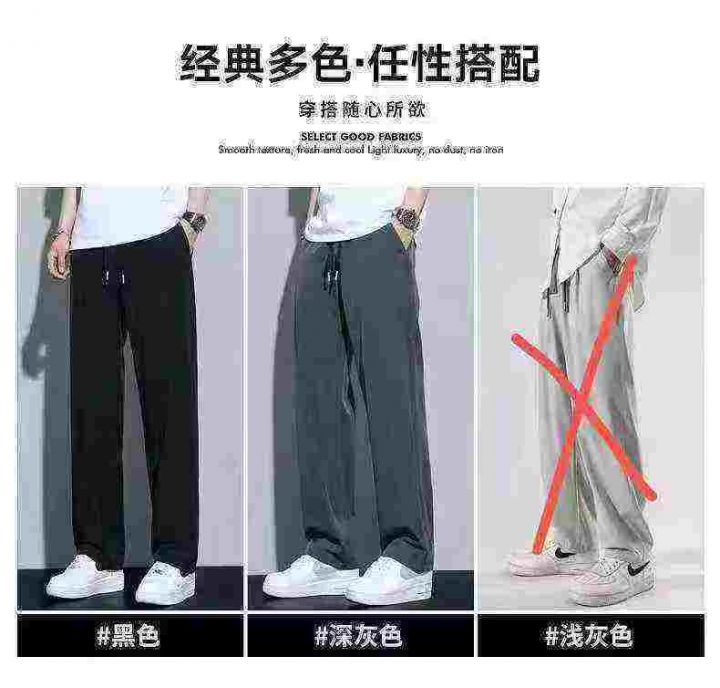外穿夏季冰丝薄款速干透气休闲裤男生运动垂感直筒阔腿长裤,全部独立拉链原包装,尺码M到4XL,黑色占比超多,货品干净,版型漂亮