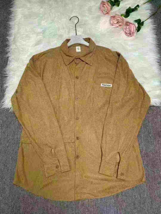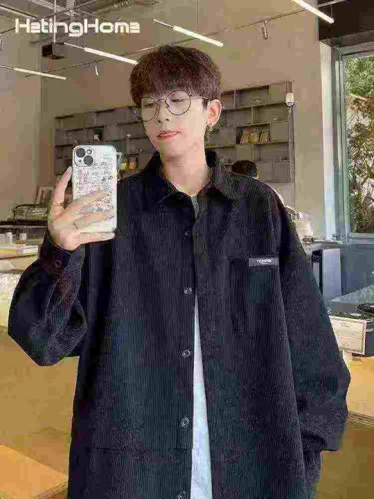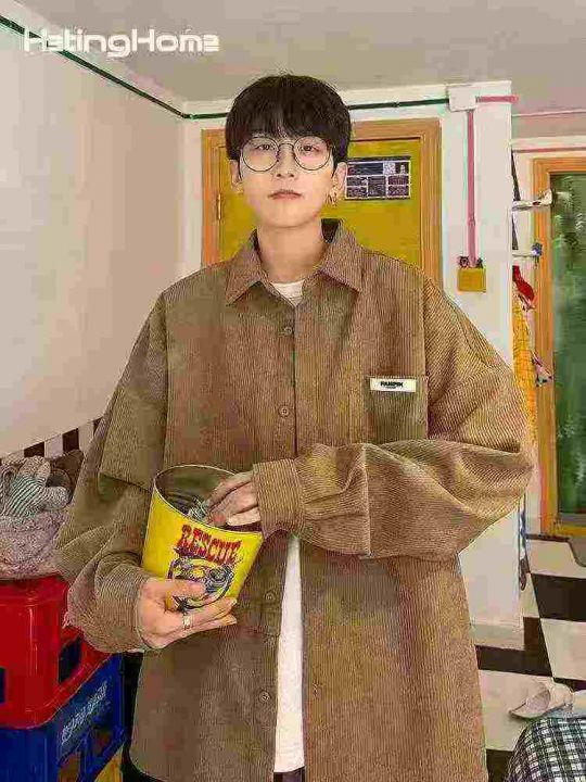 美式复古灯芯绒衬衫男单口袋宽松长袖开衫拼接设计感条绒工装160件,独立包装,尺码M~3XL全清福利价8.8元