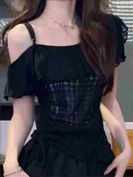 法式荷叶边吊带露肩短袖245件7.8面料柔软舒适,抽绳设计感,肩带可调节,码...