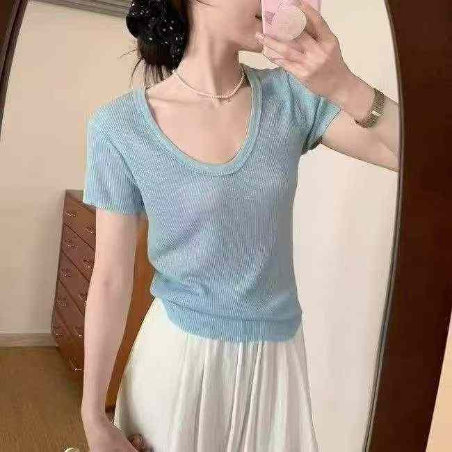 夏季新款净版简约冰丝曲珠针织短袖T桖,独立包装,均码面料柔软舒适丝滑有质感,单款多色,3100件,全清6.9元超低价秒杀!分货加一!