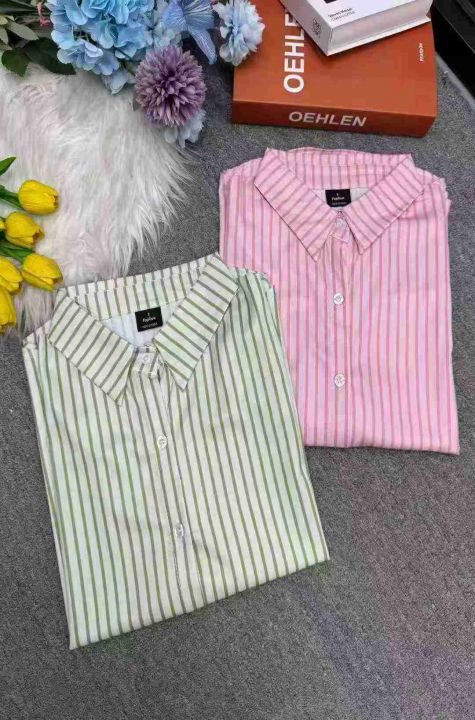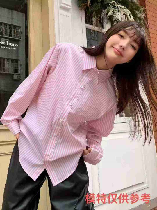 女竖条纹减龄韩系宽松气质显瘦衬衫,独立包装,码数1-5,数量140件,大货粉多,货号119#27