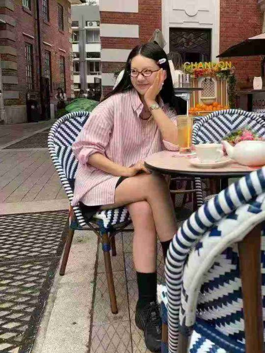 全清价7.8女竖条纹减龄韩系宽松气质显瘦衬衫,独立包...