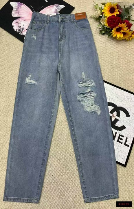 春夏季新款微胖MM破洞设计款牛仔老爹哈伦裤,独立包装...