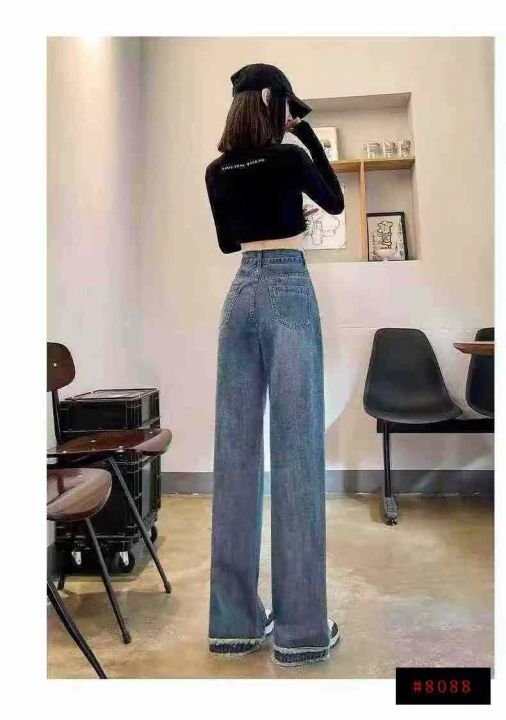 ☕️毛边直筒阔腿牛仔裤女秋冬季新款高腰毛边宽松阔腿...
