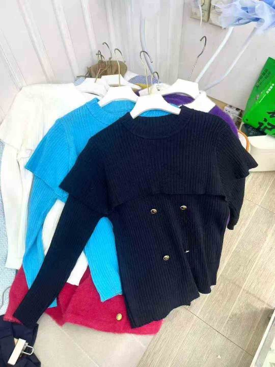① 高级感斗篷式粉色假两件针织上衣奶fufu慵懒风松弛感毛衣外套,独立包装,整款三色,均码面料软糯舒适弹力大,数量40件左右,全清7.8元