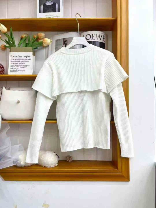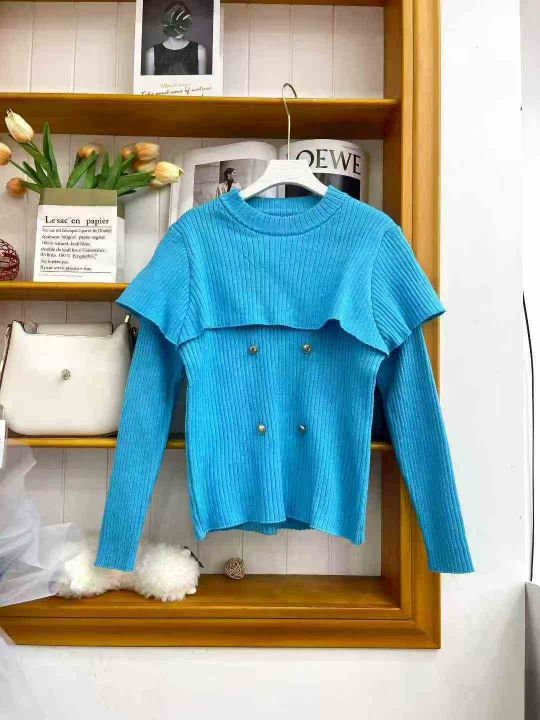 ① 高级感斗篷式粉色假两件针织上衣奶fufu慵懒风松弛...