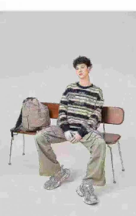 大码潮牌没计感大版型宽松痞帅鱼鳞布印花条纹卫衣,28...
