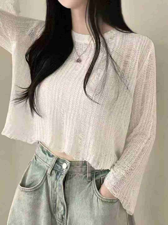 新款镂空上衣配吊带的小外搭韩版纯色宽松设计感长袖针织衫潮,整款4色,独...