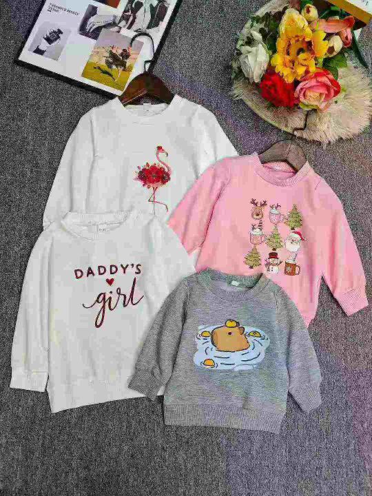 电商仓回收1891件休闲时尚印花可爱洋气儿童卫衣,码数3-6 6-9 9-12 12-18 18-24。圆领为主,少量连帽,大货白色多,独立包装。分货➕0.5