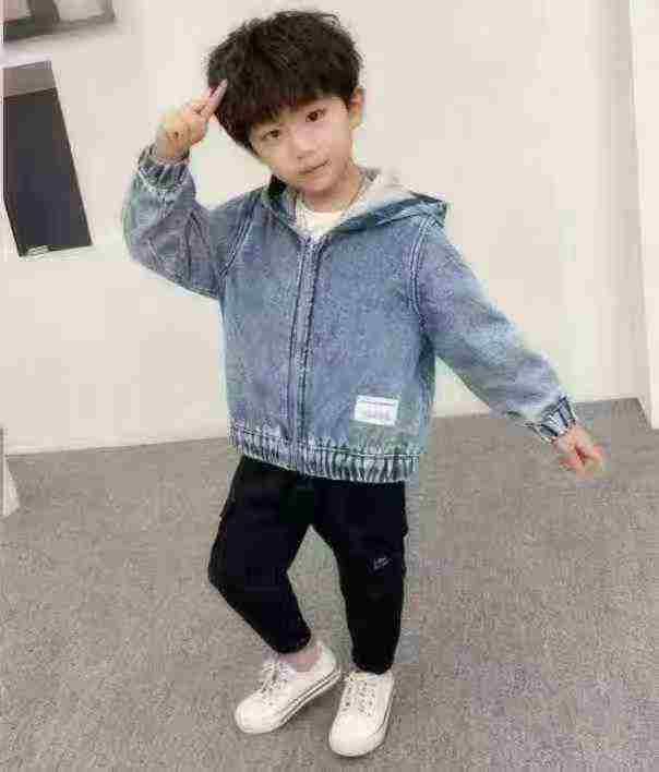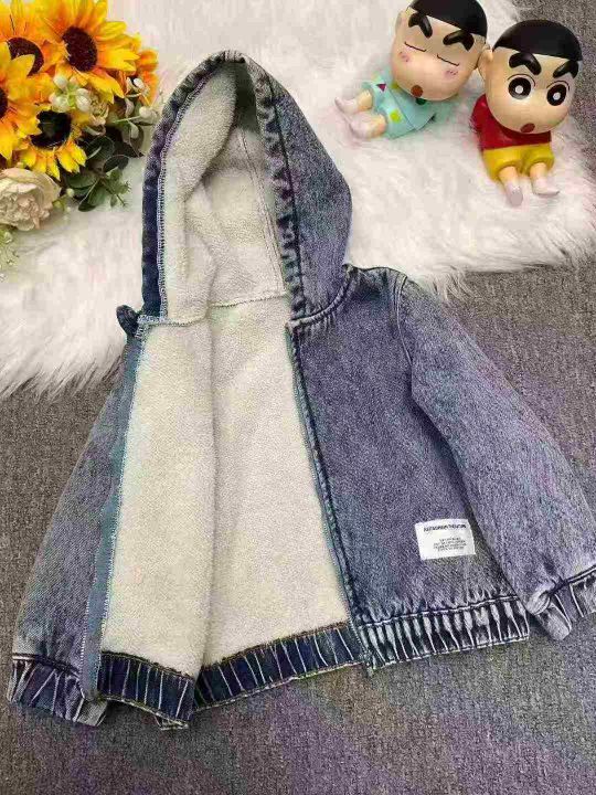 童装冬季加绒加厚(羊羔绒)洗水棉连帽牛仔外套,...