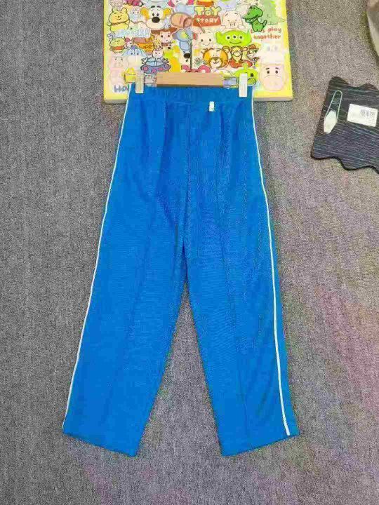 350件春夏季中大童宝蓝色一条白杠宽松休闲运动长裤 单款单色,码数28-30-32-34-36 28码裤长70cm 36码裤长90cm,独立包装。