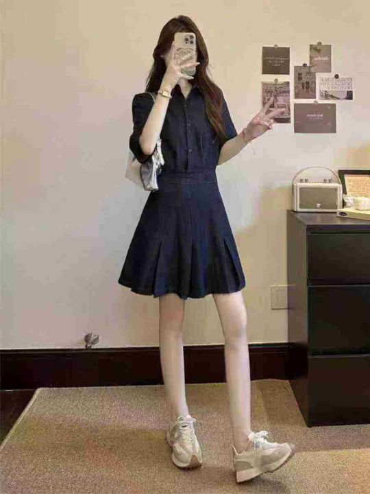 上新全清:18.8一件港风复古气质收腰显瘦牛仔连衣裙,...