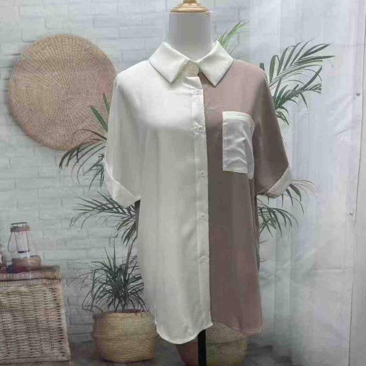 6.8元全清,大码女装短袖衬衫女设计感宽松显瘦休闲韩版拼接款,独立原包装,S-XL码,103件左右