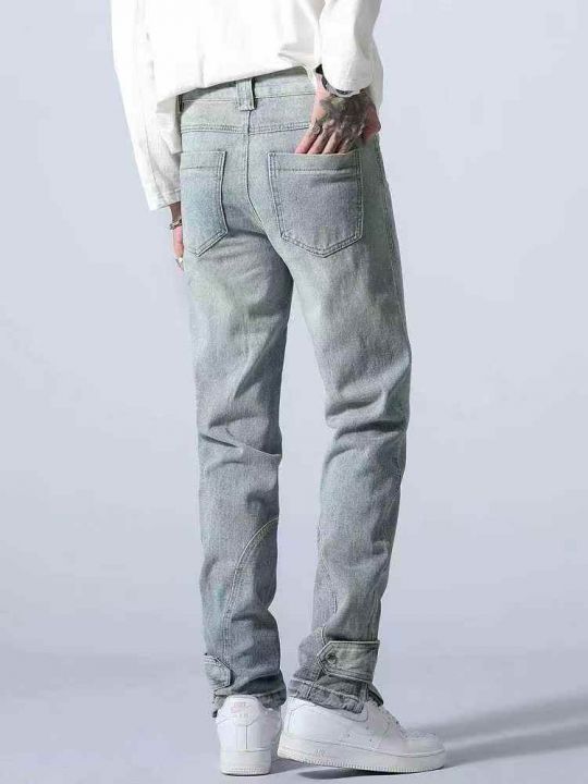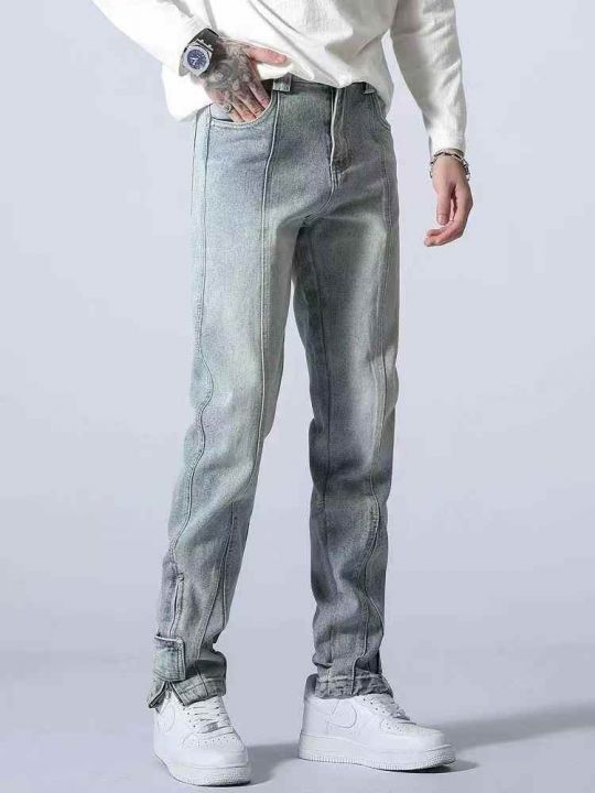 新款牛仔裤男浅色美式直筒宽松高端长裤休闲男裤高级裤...