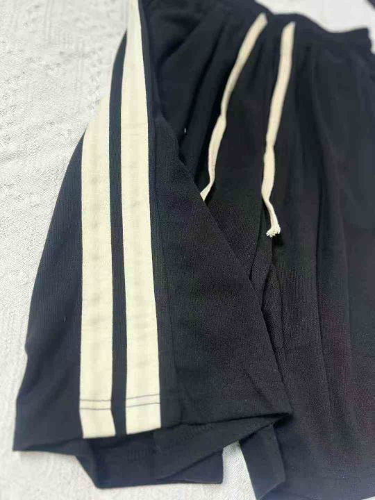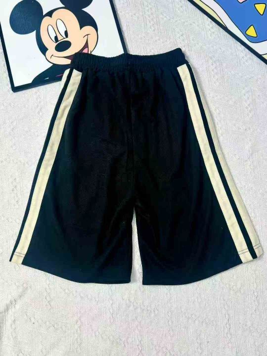 夏季美式复古重磅条纹运动裤潮牌宽松直筒休闲五分裤