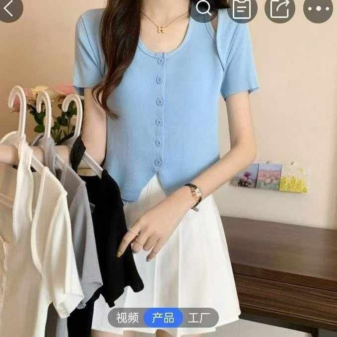 夏季新款弹力修身显瘦辣妹假两件挂脖短款针织短袖,独立包装,均码面料柔软舒适,780件,全清6.9元超低价秒杀!分货加一!白色为主!