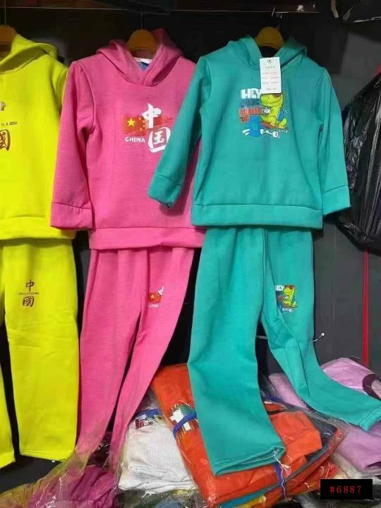 [太阳]全清9.9元、100件起10.9元,3000件加绒童装连帽套装卫衣,一捆三个码数2-8岁,花型颜色多多均配@_@