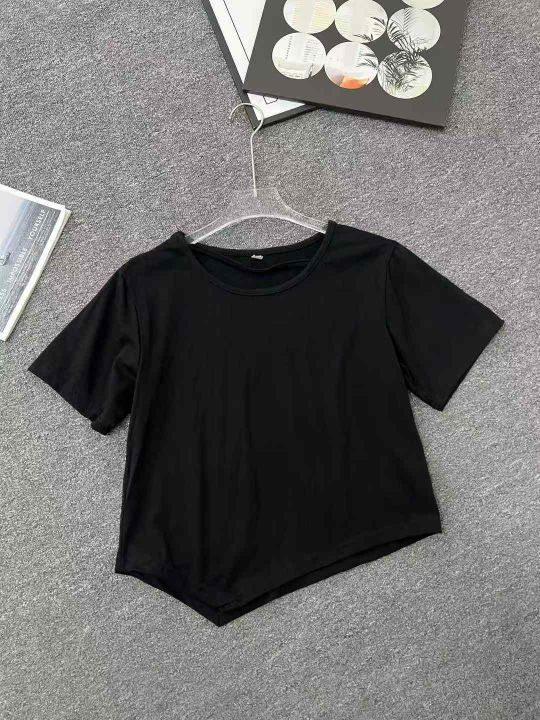 ☕️纯棉设计感不规则正肩短袖t恤高级感辣妹短款上衣260件全清6.8元,S到XXL,单款黑色,独立包装,辣妹T恤高弹力[庆祝][庆祝][庆祝]