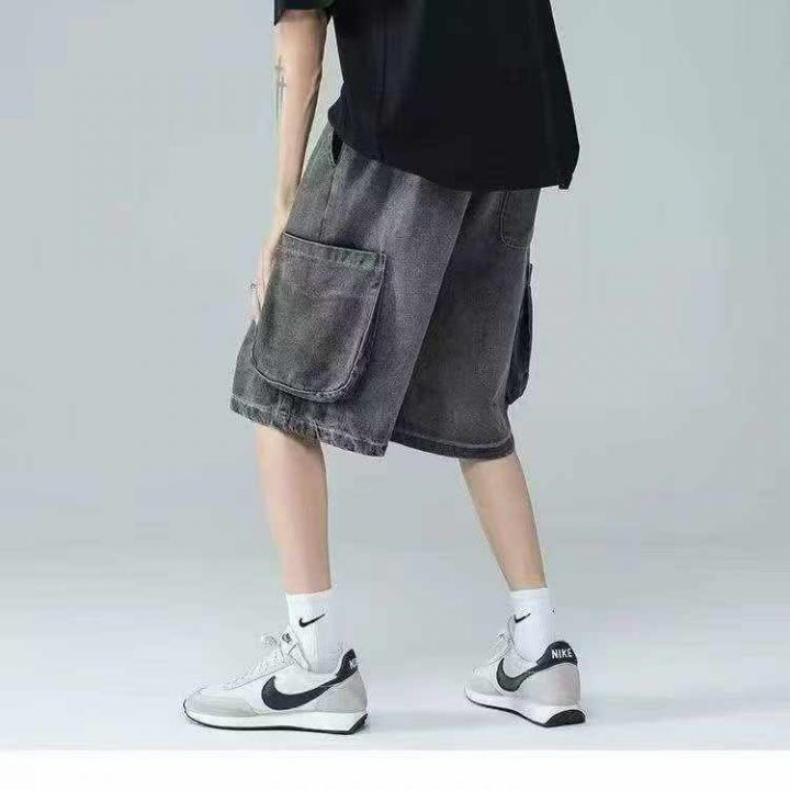 捡漏款,夏季新款松紧腰男士宽松百搭多袋洗水棉牛仔工...