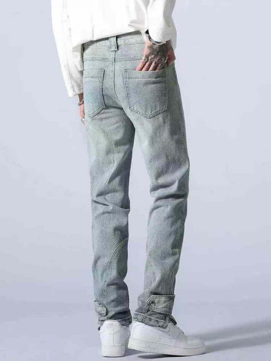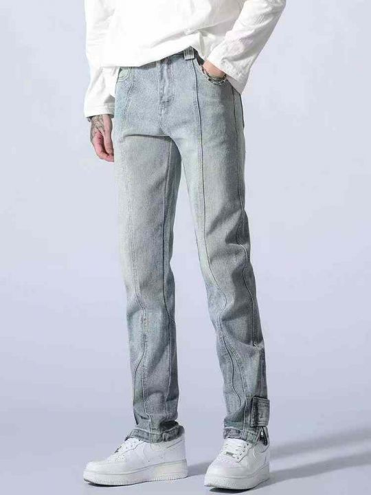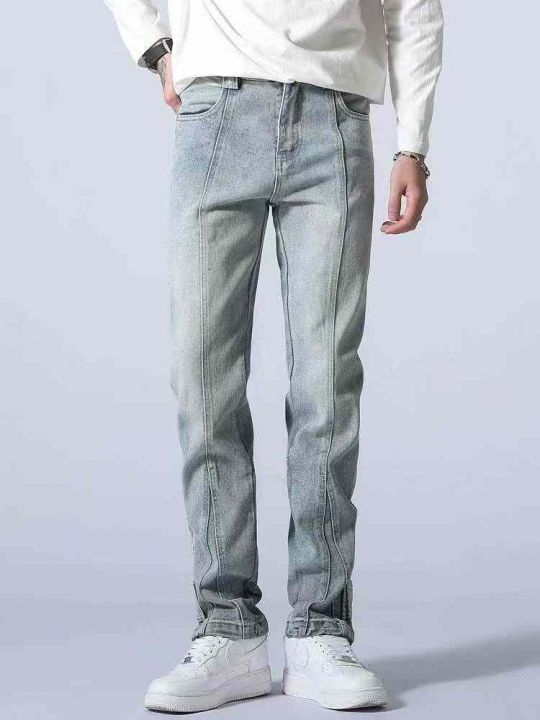 新款牛仔裤男浅色美式直筒宽松高端长裤休闲男裤高级裤...