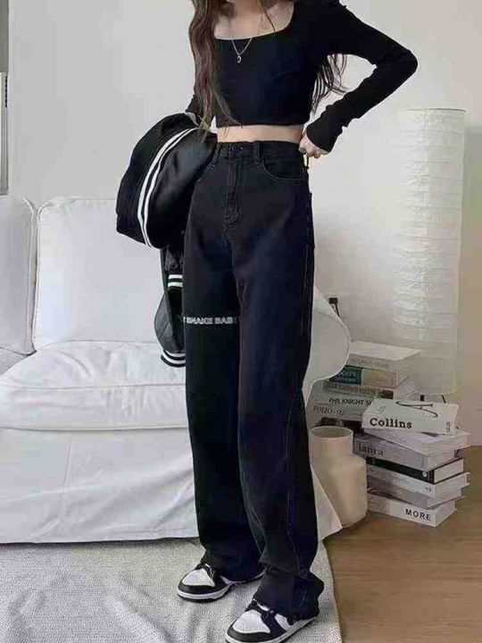 3️⃣天猫下架女士美式显瘦高腰宽松直筒阔腿牛仔裤80...