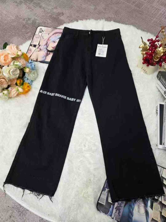 茵曼秋季新款爆款印花设计感牛仔裤洋气直筒阔腿宽松休闲裤,独立包装,S -...