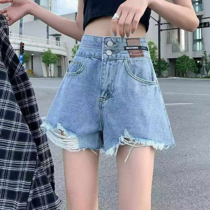 夏季新款网红复古高腰a字宽松辣妹阔腿牛仔短裤,独立...