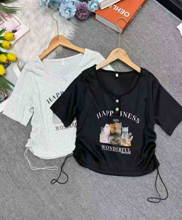 全清价6.5美式螺纹印花甜辣设计感小众修身短上衣,独...