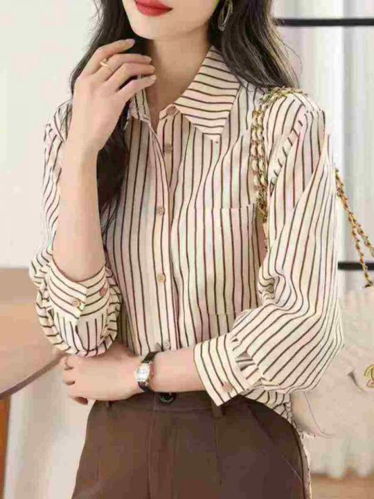 条纹衬衫女士装早春秋2026年新款爆款时尚小个子洋气上衣长袖衬衣,1到4码,独立包装,487件,独立包装,货品干净,7.8清,分货加1