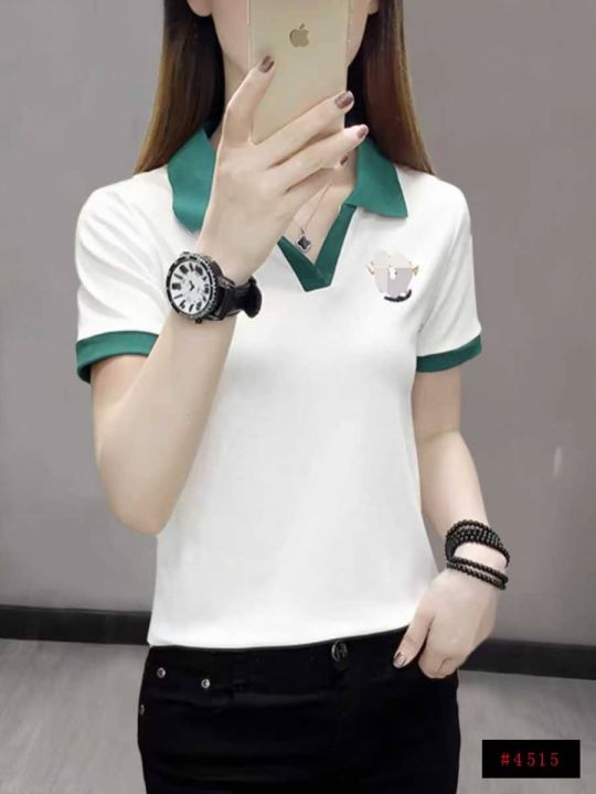 5.9元,靓妹短袖V领T恤棉质辣妹polo衫,562件,M-2XL...