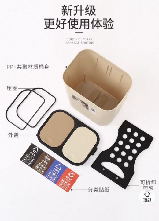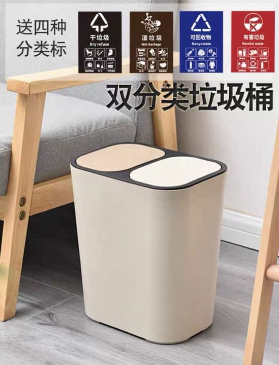 室内分类垃圾桶干湿分离厨房客厅双桶按压式带盖收纳桶...