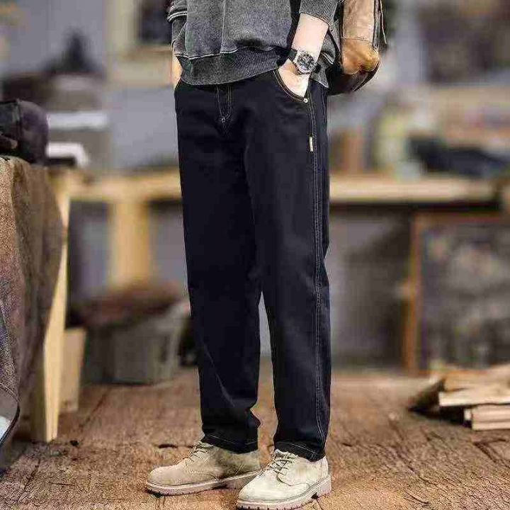 春秋新款男士宽松百搭松紧腰牛仔长裤,独立包装带吊牌...