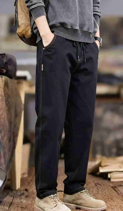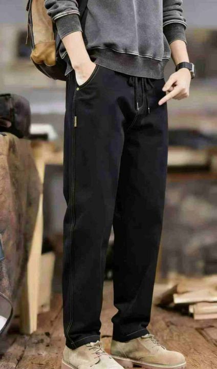 春秋新款男士宽松百搭松紧腰牛仔长裤,独立包装带吊牌...