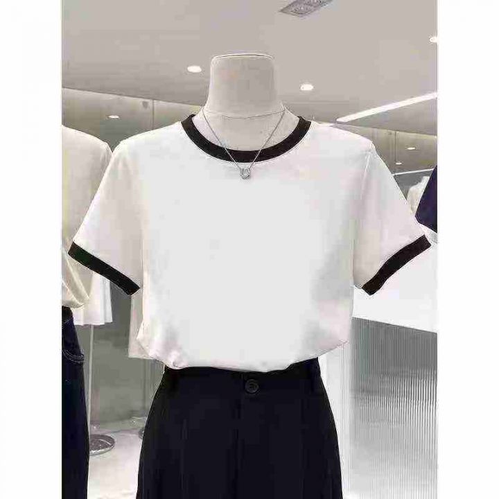 ☕️纯棉基础款正肩短袖t恤女宽松显瘦撞色拼接上衣潮4...