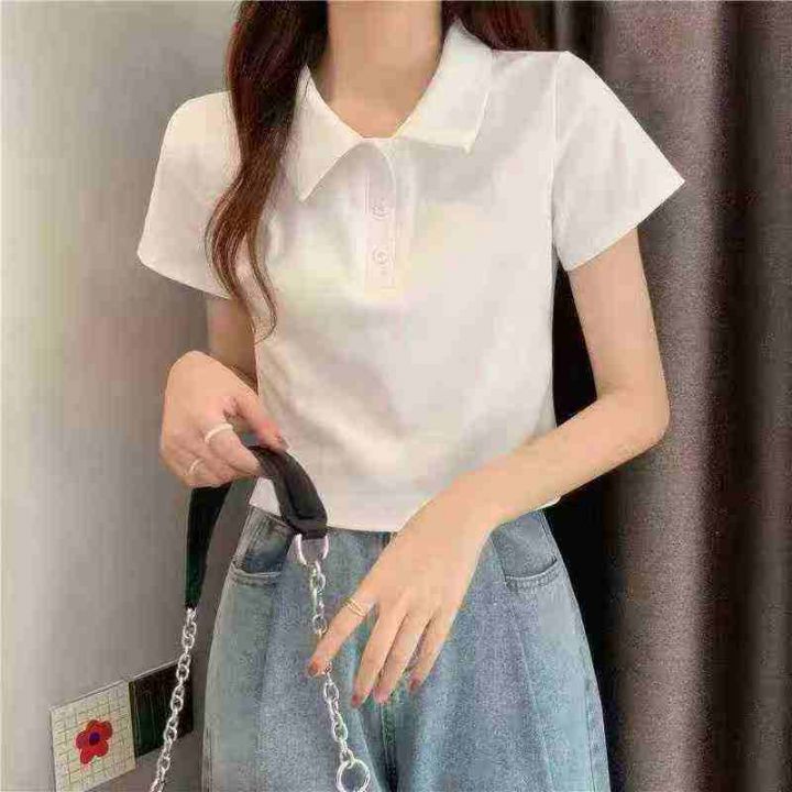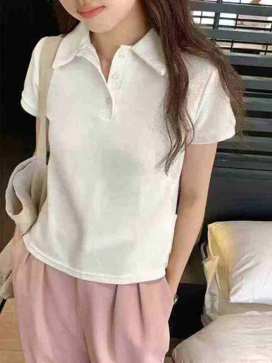 ☕️美式POLO衫新款夏季纯白色T恤女立领正肩短袖百搭上衣414件全清6.8元,分货7.8元,单款白色,S到XXL,纯棉辣妹T恤,10件一包装[庆祝][庆祝][庆祝]