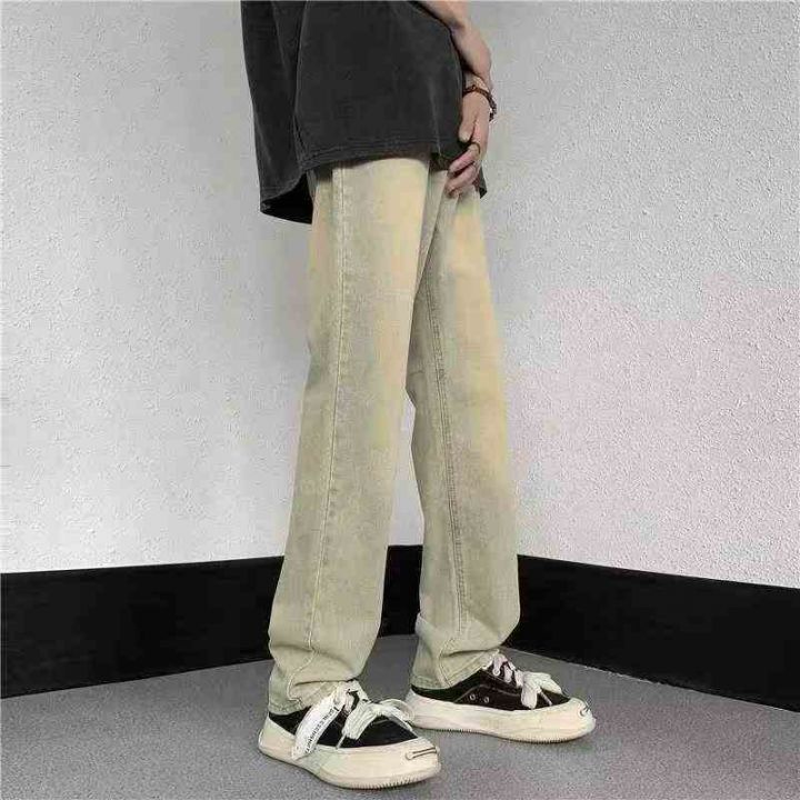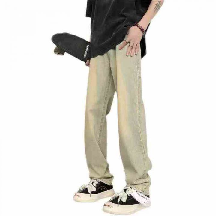 男士水洗黄泥色牛仔裤男款复古高街vibe宽松直筒阔腿裤...