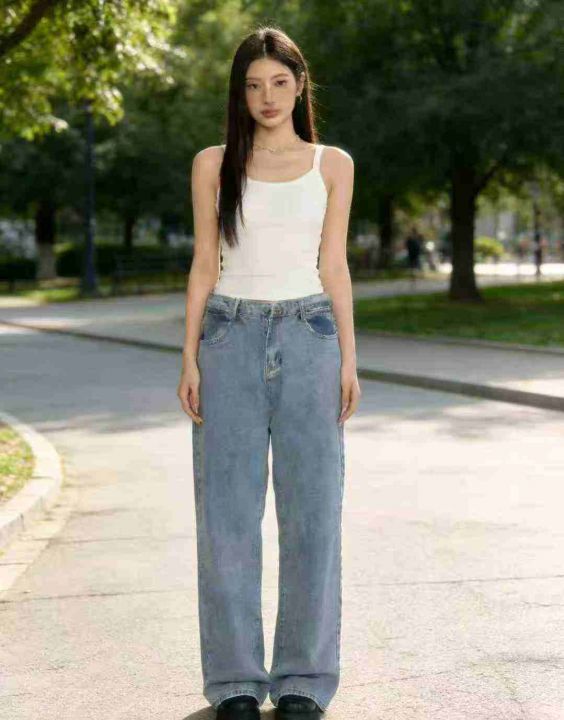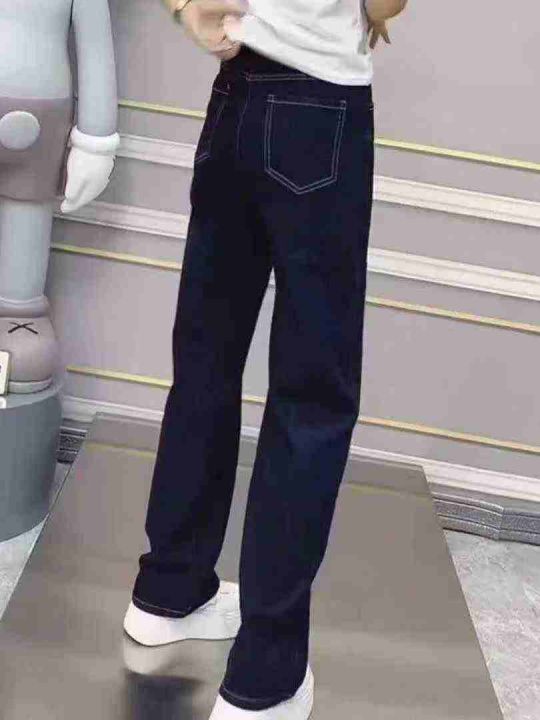 茵曼秋季新款爆款印花设计感牛仔裤洋气直筒阔腿宽松休闲裤,独立包装,S -...
