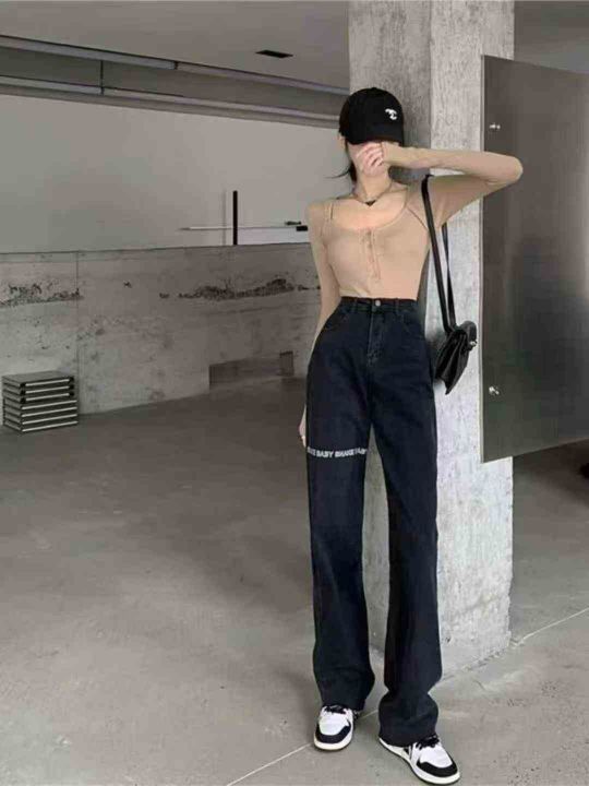 夏季薄款复古高街阔腿牛仔裤女ins垂感高腰,单款单色,独立包装带吊牌,码...