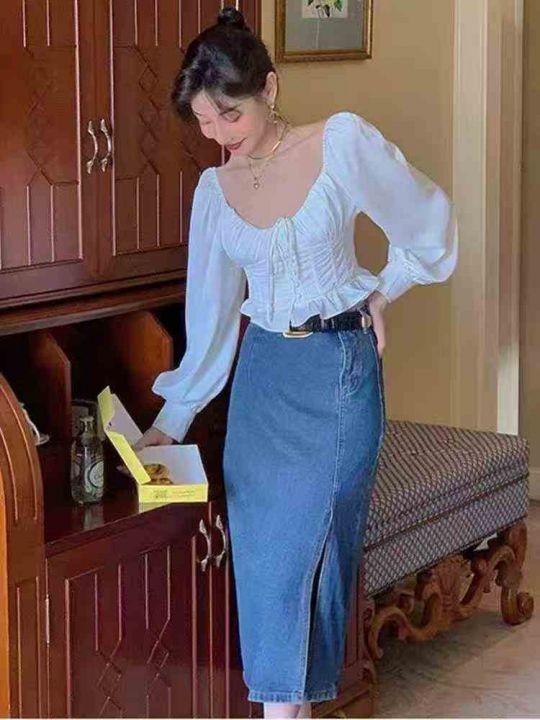 搭配复古高腰开叉牛仔裙女夏直筒显瘦包臀半身裙过膝320件,独立包装带吊牌,尺码S~5XL全清福利价9.9秒