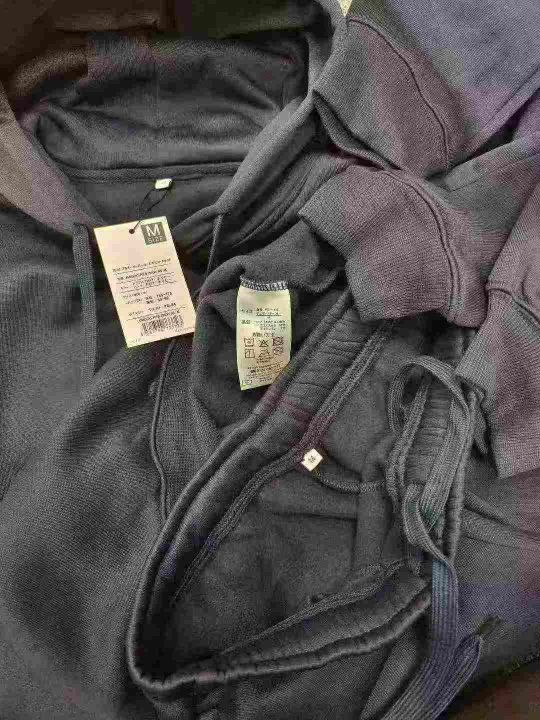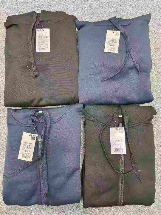 日本原单加绒连帽卫衣裤22150套,套头款16500套,拉链款5650套,新货100%品检公司合格品。两款两色独立包装三标齐全,品牌纸箱分码装。面料统一抓绒聚酯纤维。