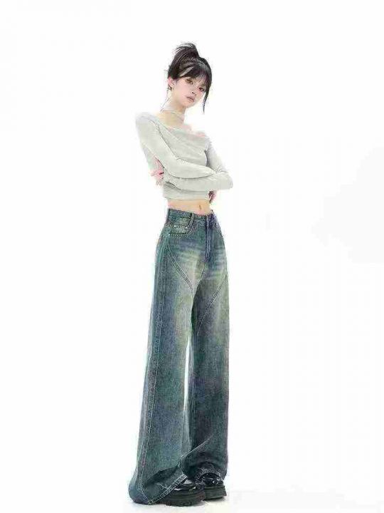 美式阔腿高腰宽松设计感直筒女牛仔裤,码数s-XL,独立包装货品干净,面料舒服柔软,180条全清16.8