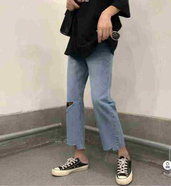 大码破洞牛仔裤女高腰胖mm显瘦梨型身材直筒裤子宽松九分阔腿裤300件,独立包装带吊牌,尺码S~5XL,全清福利价8.8元分货➕1