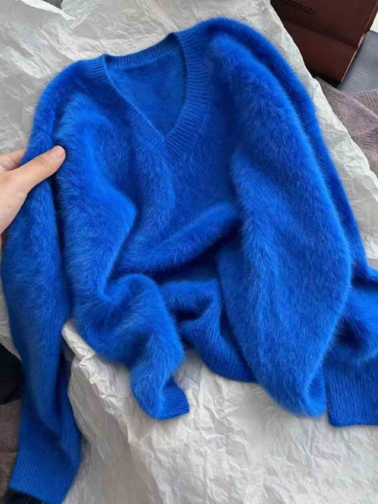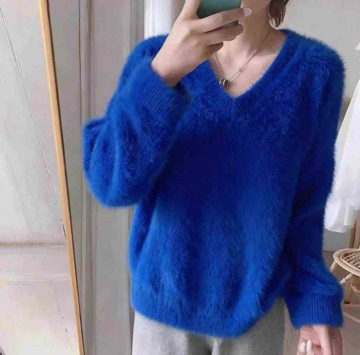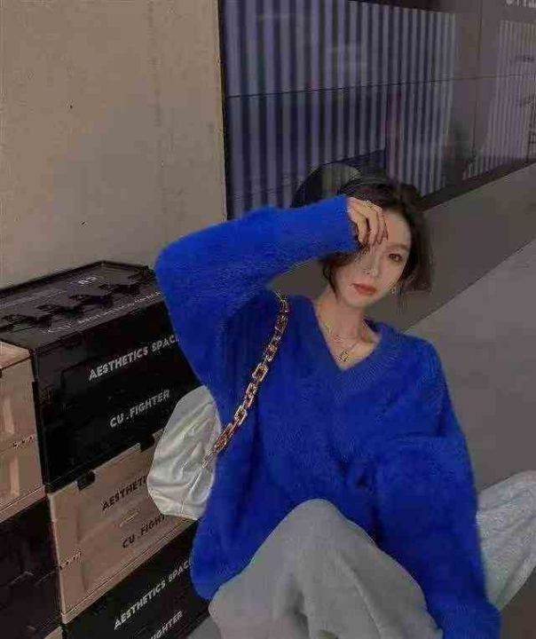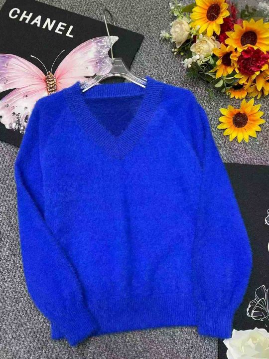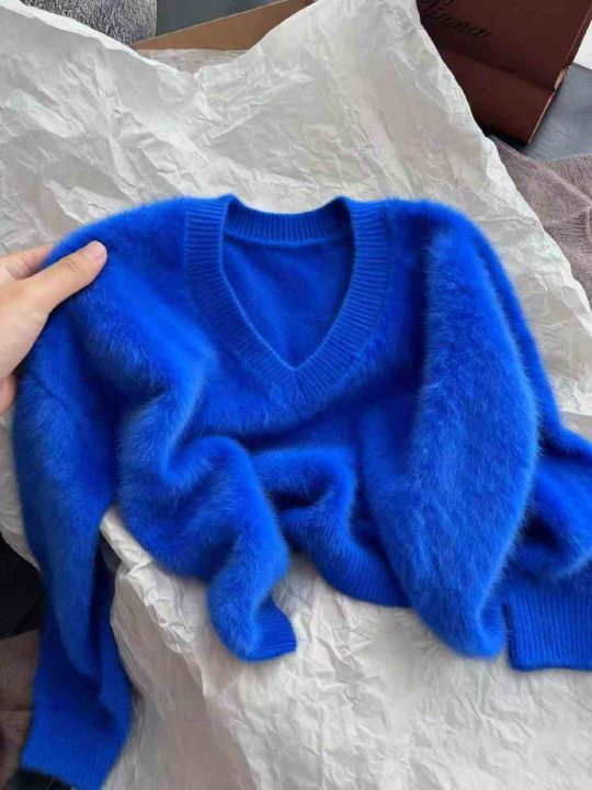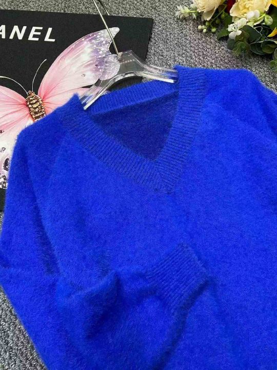 捡漏款,春秋新款韩系软糯克莱因蓝V领高级感宽松慵懒风防水貂毛套头毛衣,均码面料软糯厚实,67件,全清6.9元超低价秒杀!